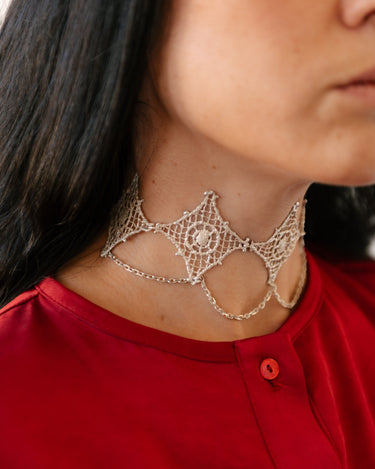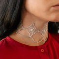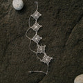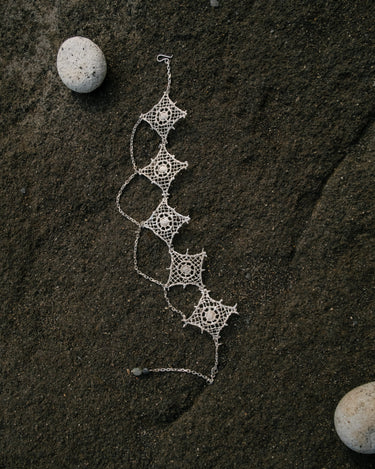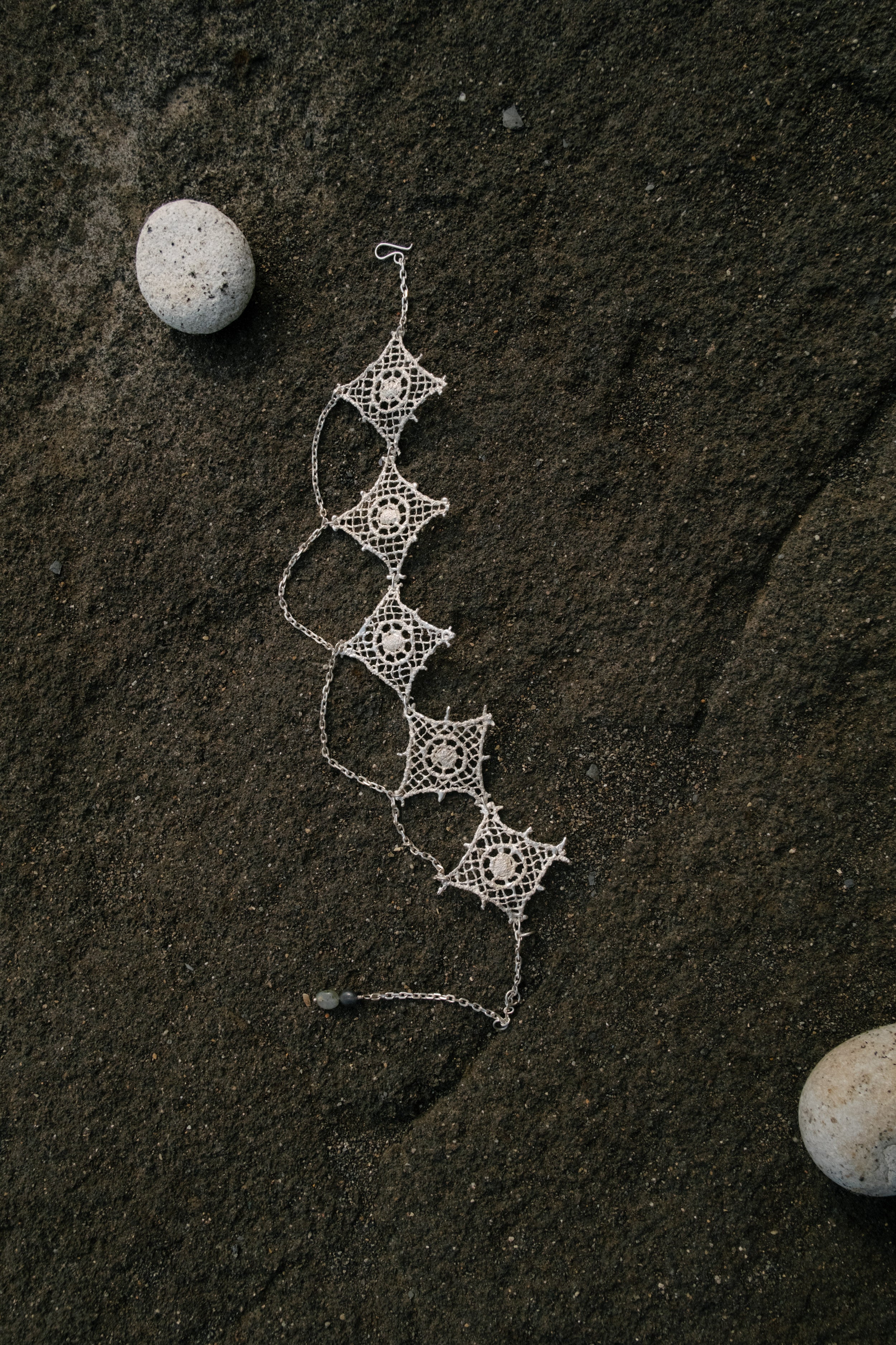 Five rhombuses intertwine as guardians of ancient secrets. Each angle holds a spell that protects and connects, forming a necklace that embraces the throat with its silent strength.