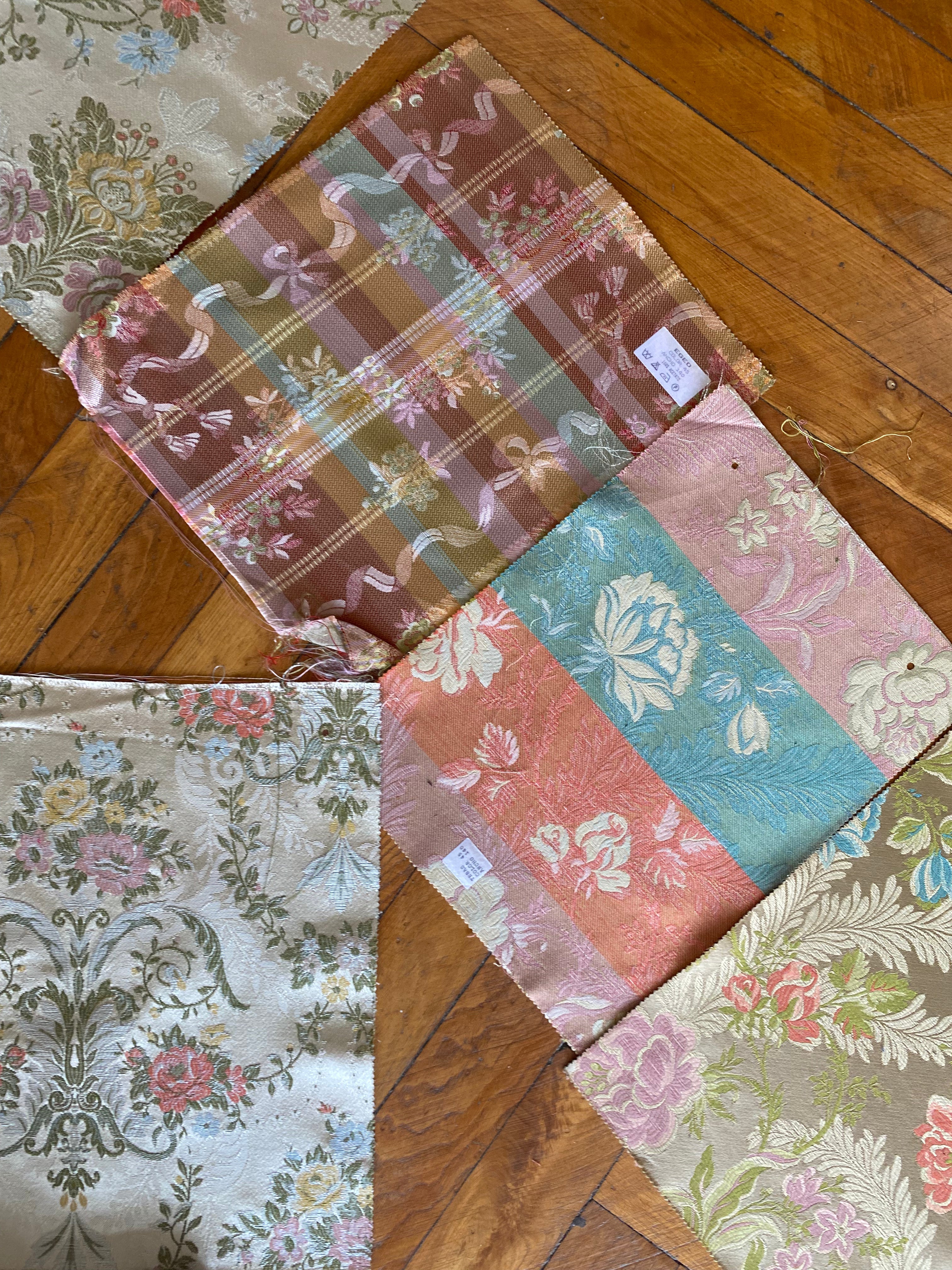 Another intention of this project is to explore how to blend different sustainable fabrics such as silk with linen, recycled bamboo, recycled nylon and upcycled antique curtains.