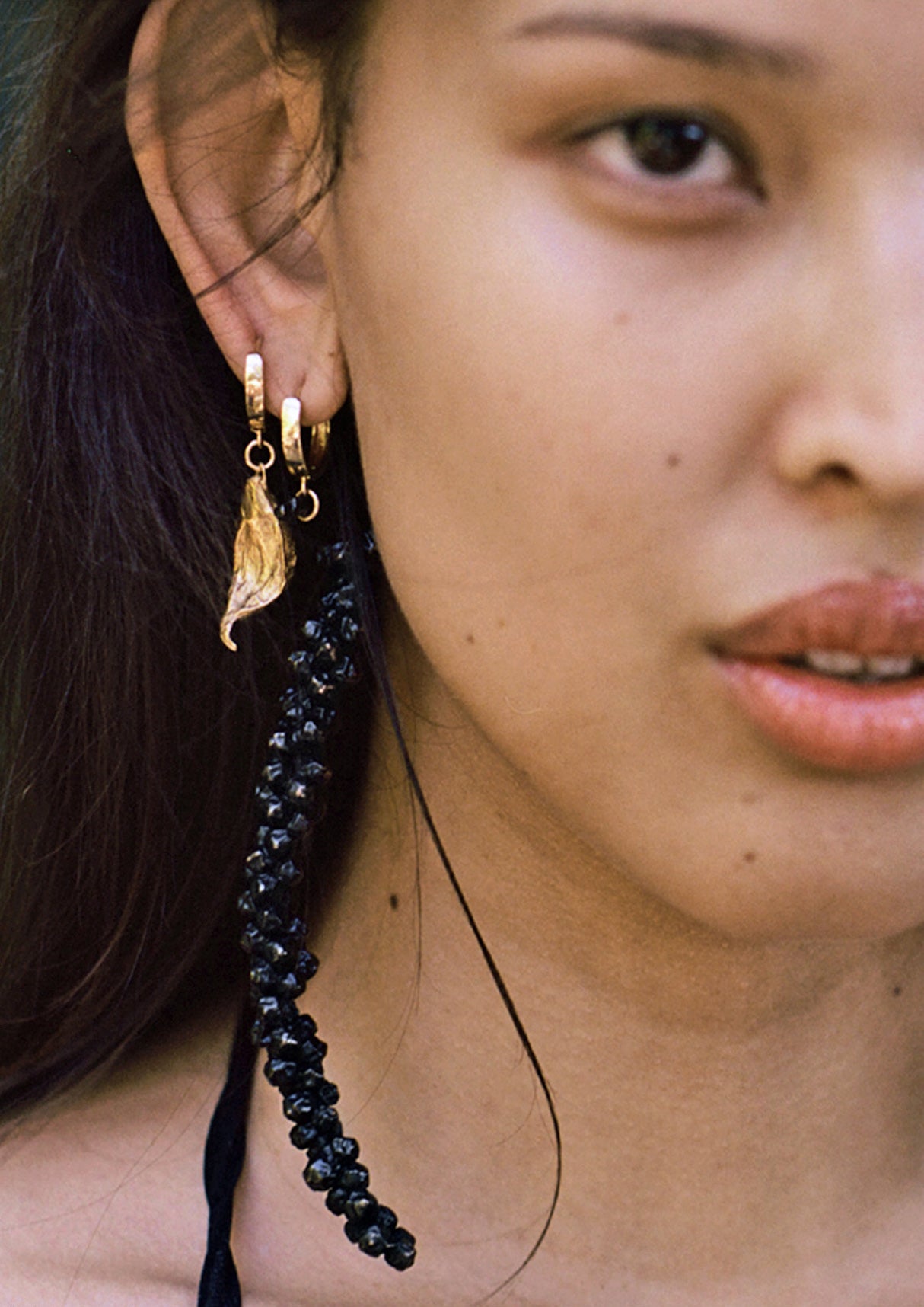Her handmade jewellery are inspired by Southeast Asian folk medicine and a shamanic practice called ‘susuk’. This ritual includes plant-based ingredients like roots, flowers, spices, and seeds to enhance a person’s magnetism.