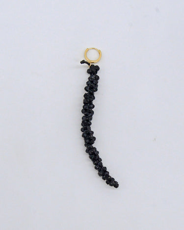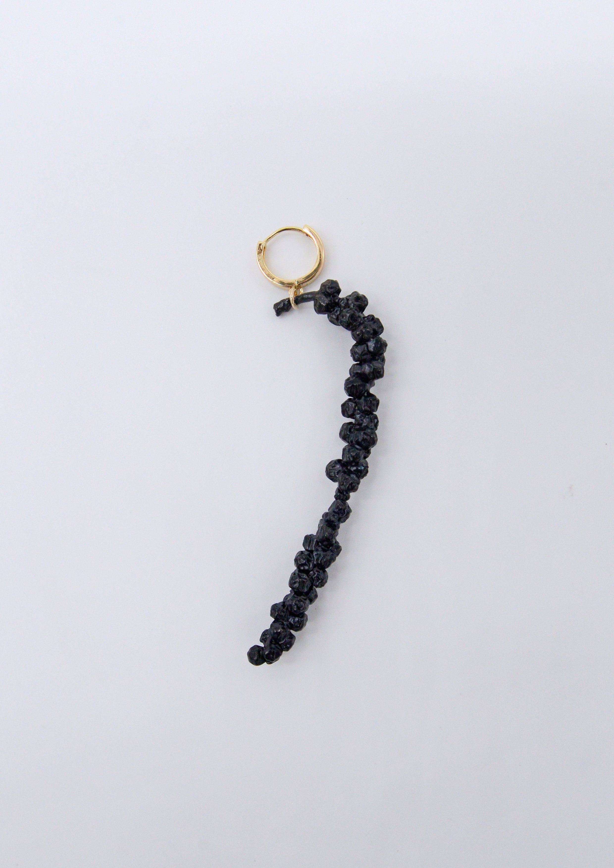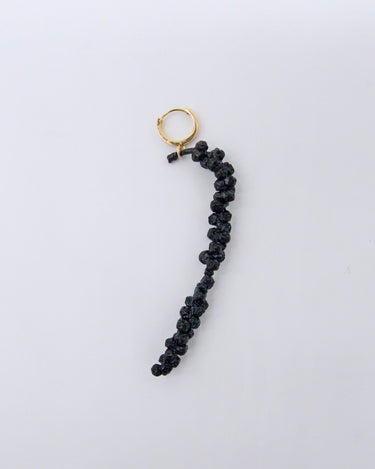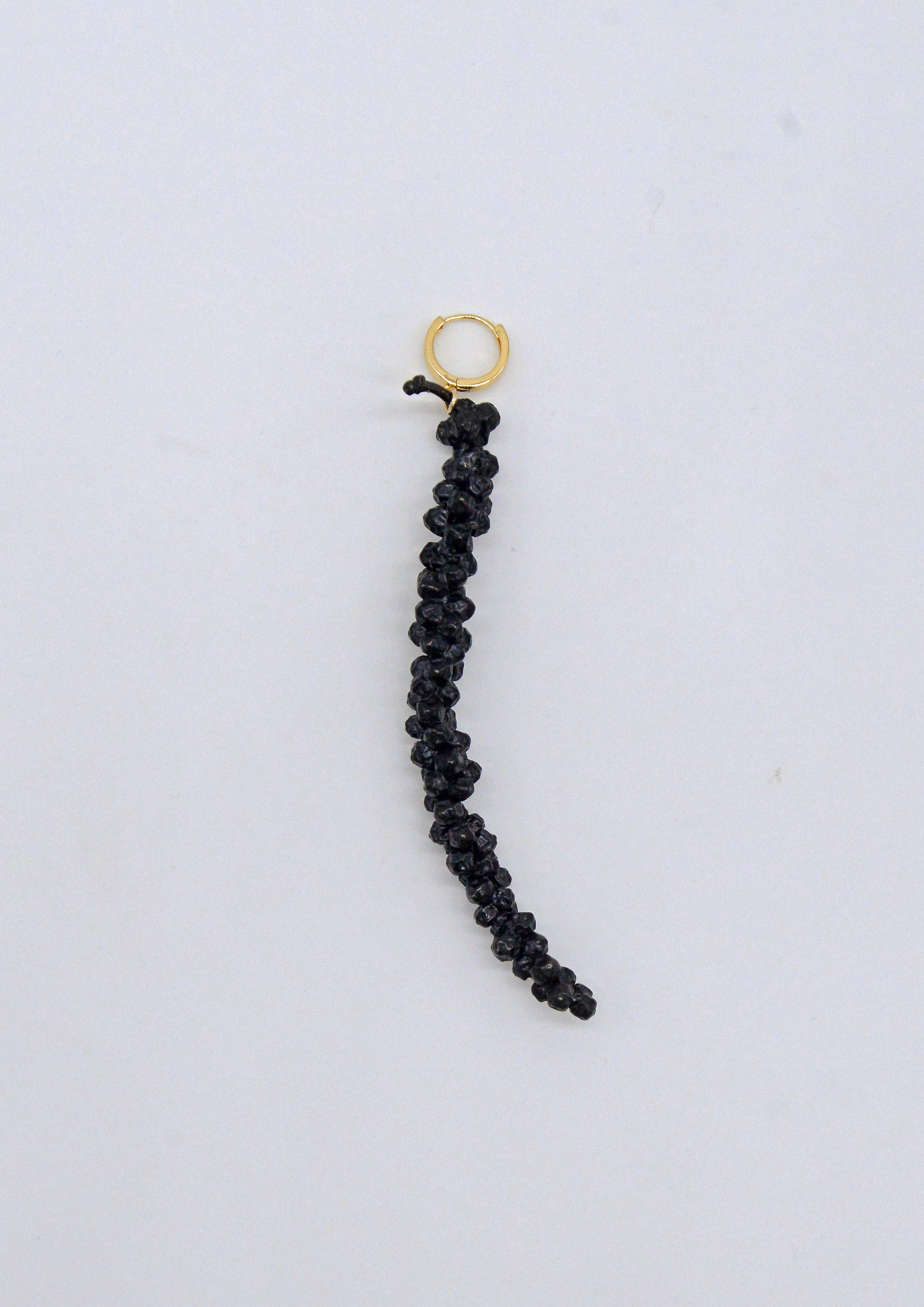 Black ruthenium plated brass Peppercorn, paired with a 18 karat gold plated brass hoop earring and 12 karat gold jump ring.