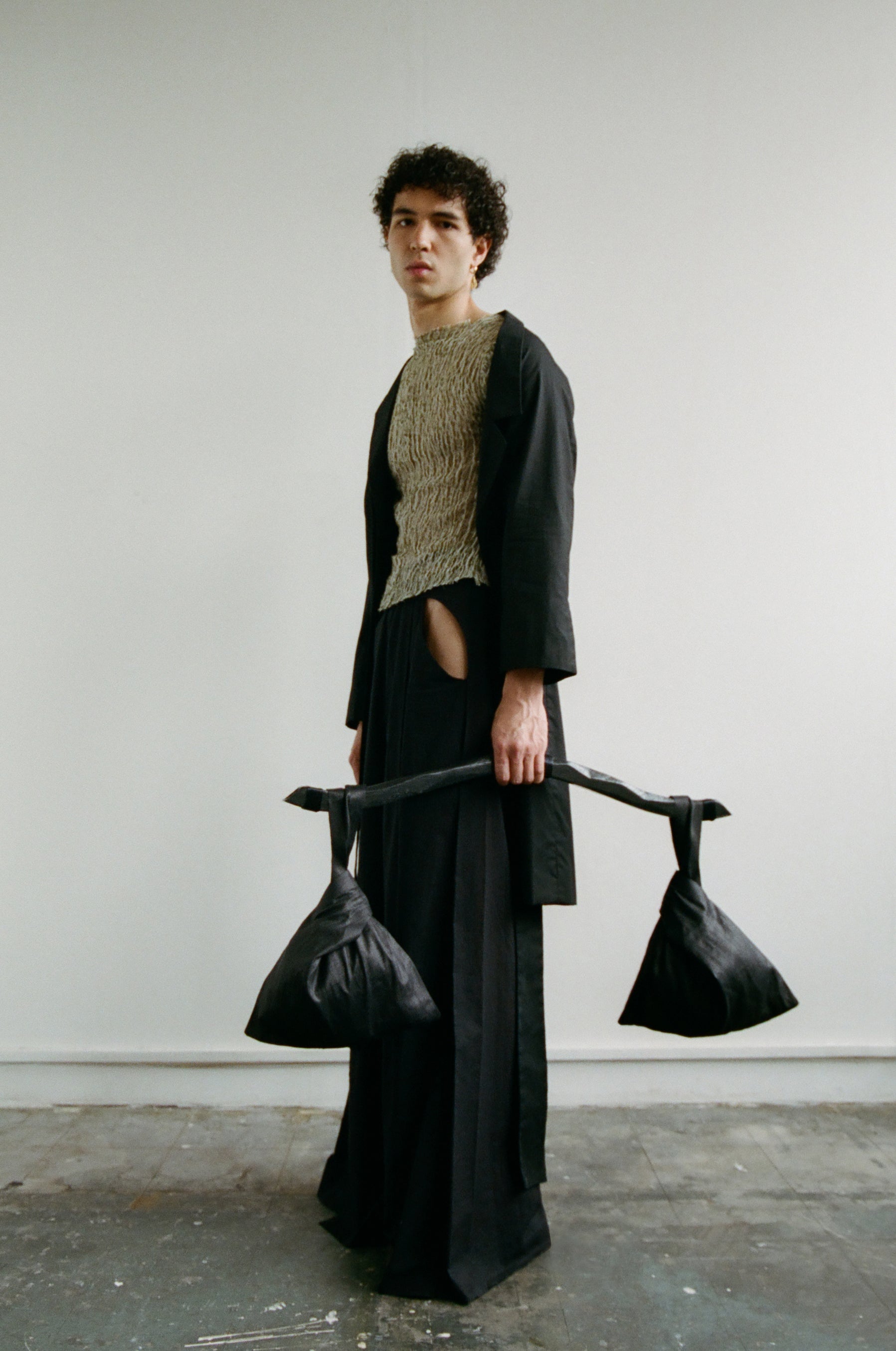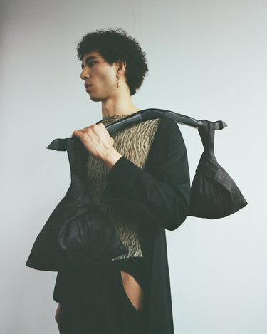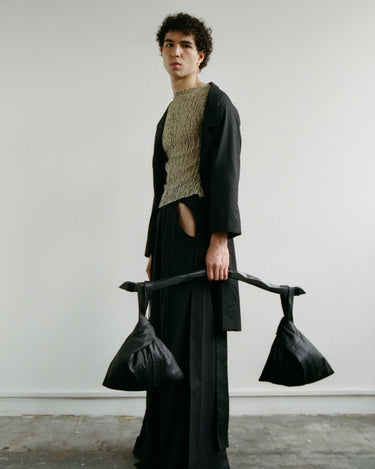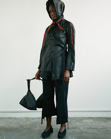Crafting contemporary genderless mythwear, her practices are committed to sustainability and honoring traditional crafts - all garments are handwoven with natural fabrics where the marks of the maker are evident.