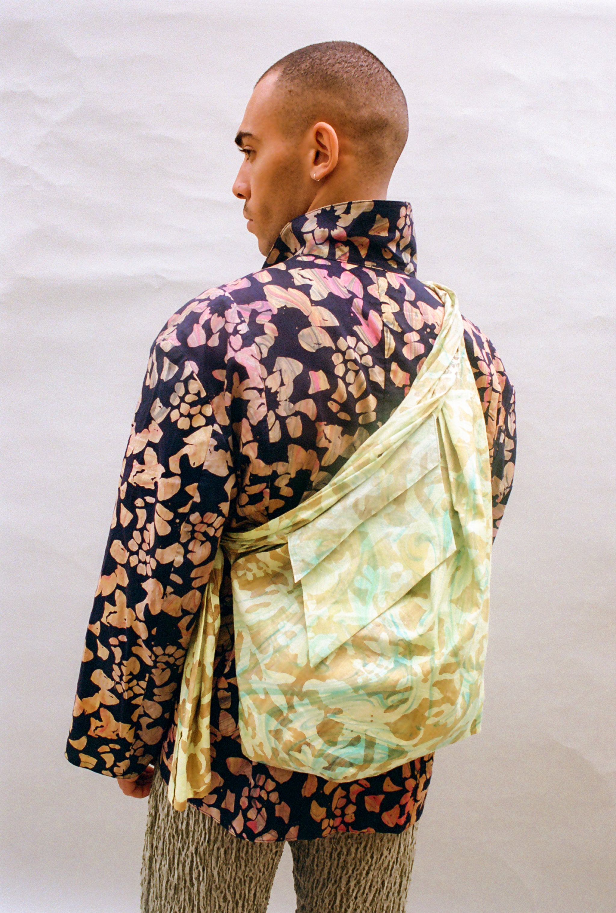 APPLICATION: Sling bag with front pouch, inner pocket and large inner compartment. Tied with an adjustable knot. Made from hand-dyed hand block printed Batik fabric made in Terengganu, Malaysia. Each length of batik fabric is unique and varies in pattern and color. We will provide all available fabric options for you to choose from, or we can surprise you.