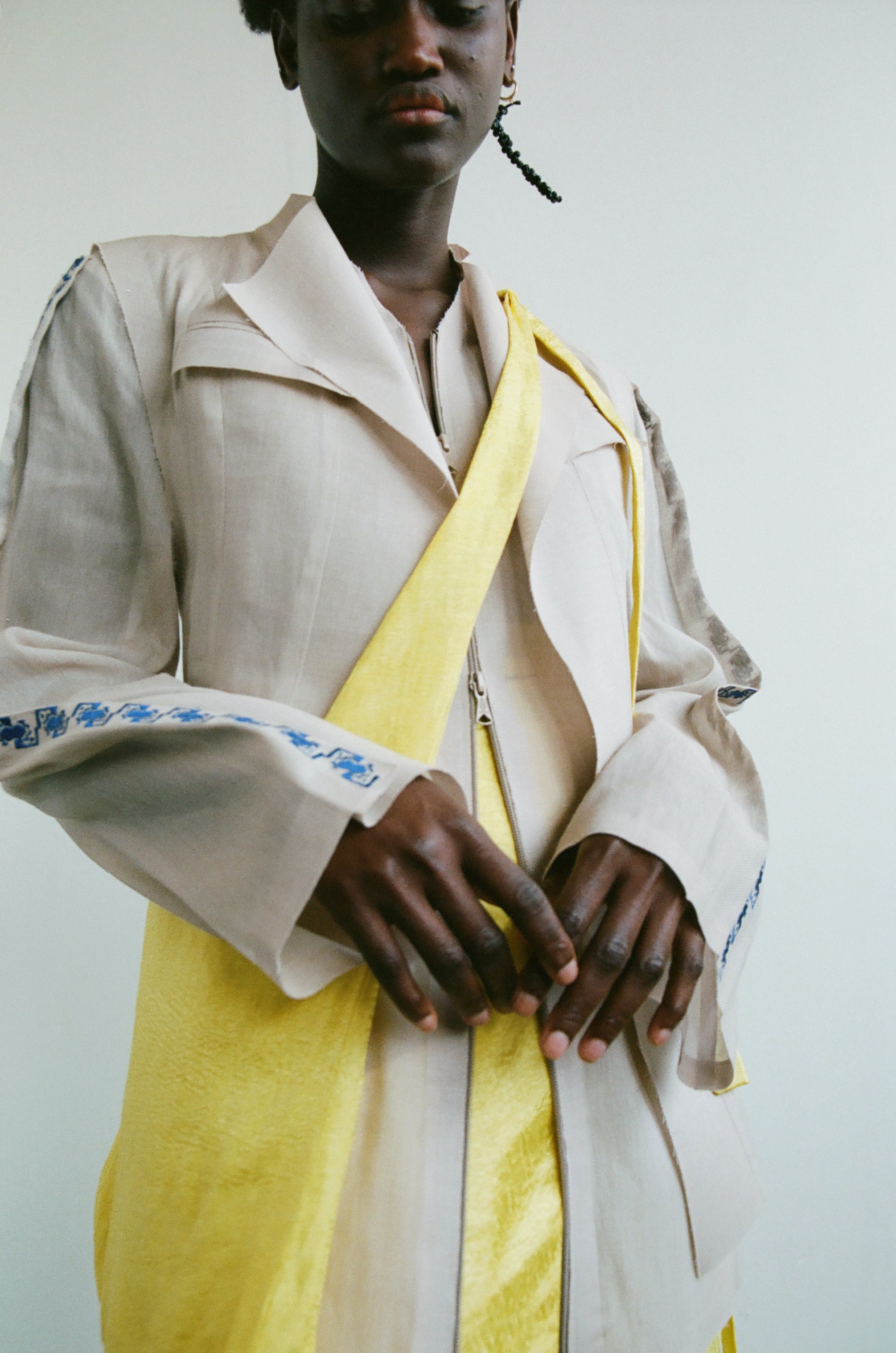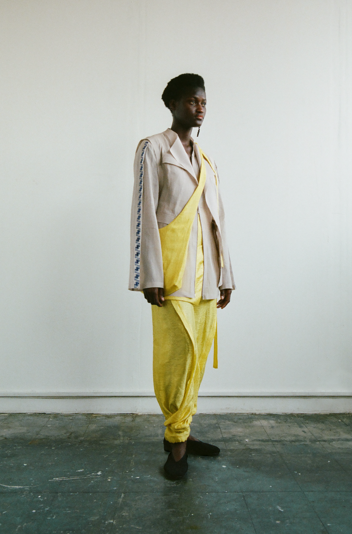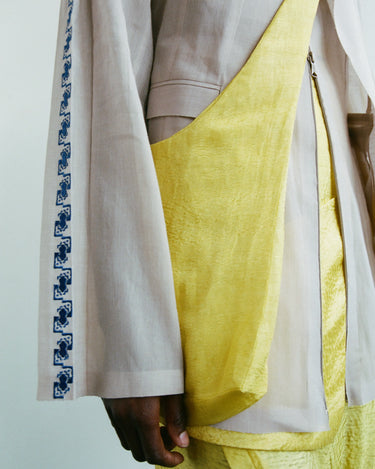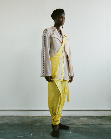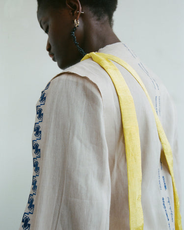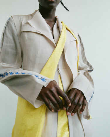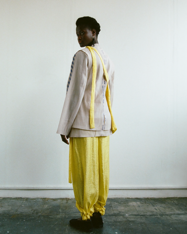 Crafting contemporary genderless mythwear, her practices are committed to sustainability and honoring traditional crafts - all garments are handwoven with natural fabrics where the marks of the maker are evident.