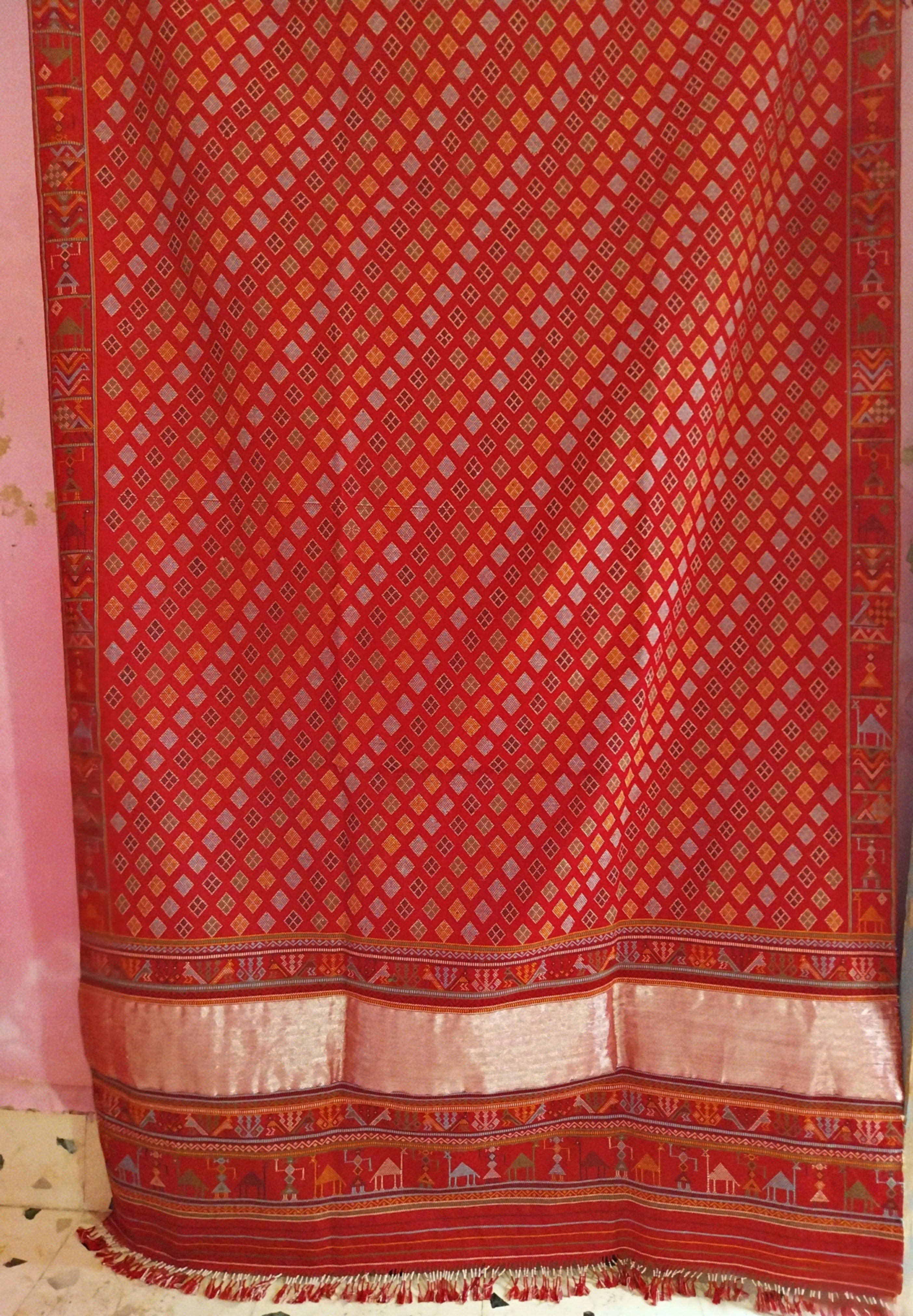 Deeply rooted in the cultural fabric of Gujarat, Jam Khambhaliya weaving is renowned for its extra‑weft technique paired with zari borders and radiant hues, a tradition stretching back centuries.