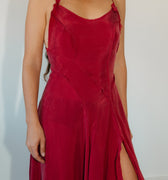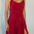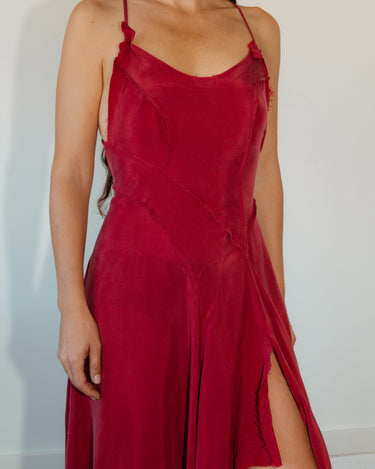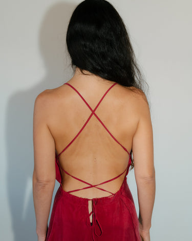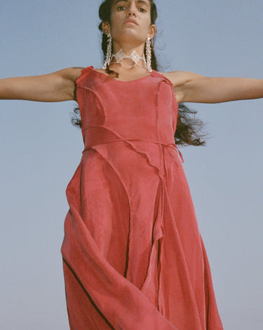 The piece is crafted using patchwork, a process that allows us to make the most of the fabric and minimize waste. For this dress, we chose high-quality vegan silk, a material with a subtle sheen and uniquely soft touch that brings lightness and sophistication.
