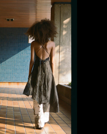A versatile dress inspired by the mythical Xana, the Asturian forest fairy. Its open-back design with adjustable ties gracefully adapts to different body types, naturally enhancing femininity.
