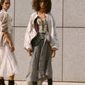 This garment is made from upcycled fabrics, minimizing environmental impact. saving on average: 293L of 8.5KG of water CO2 per meter of fabric.