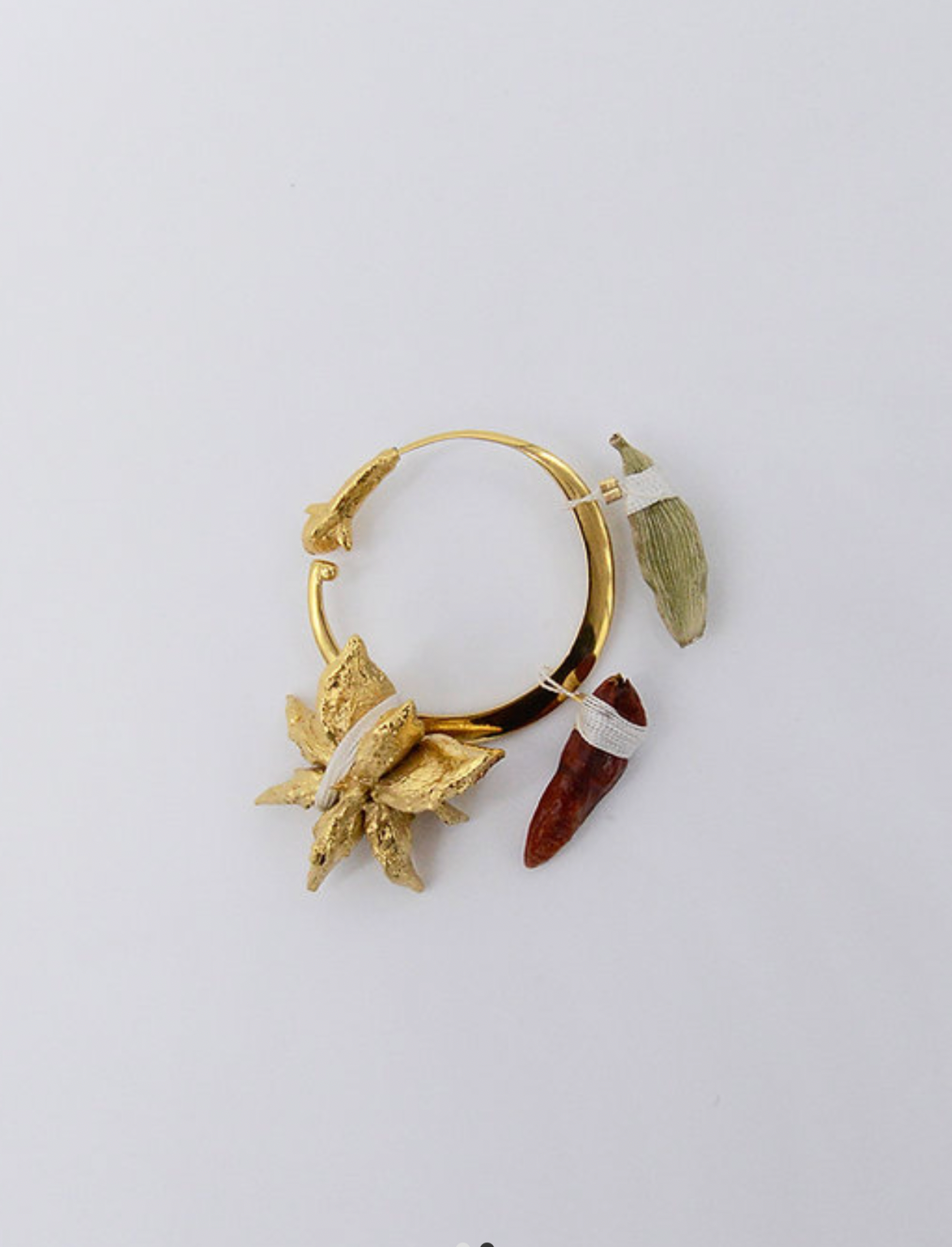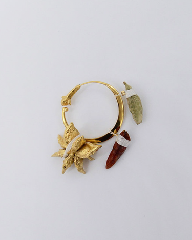 Her handmade jewellery are inspired by Southeast Asian folk medicine and a shamanic practice called ‘susuk’. This ritual includes plant-based ingredients like roots, flowers, spices, and seeds to enhance a person’s magnetism.