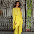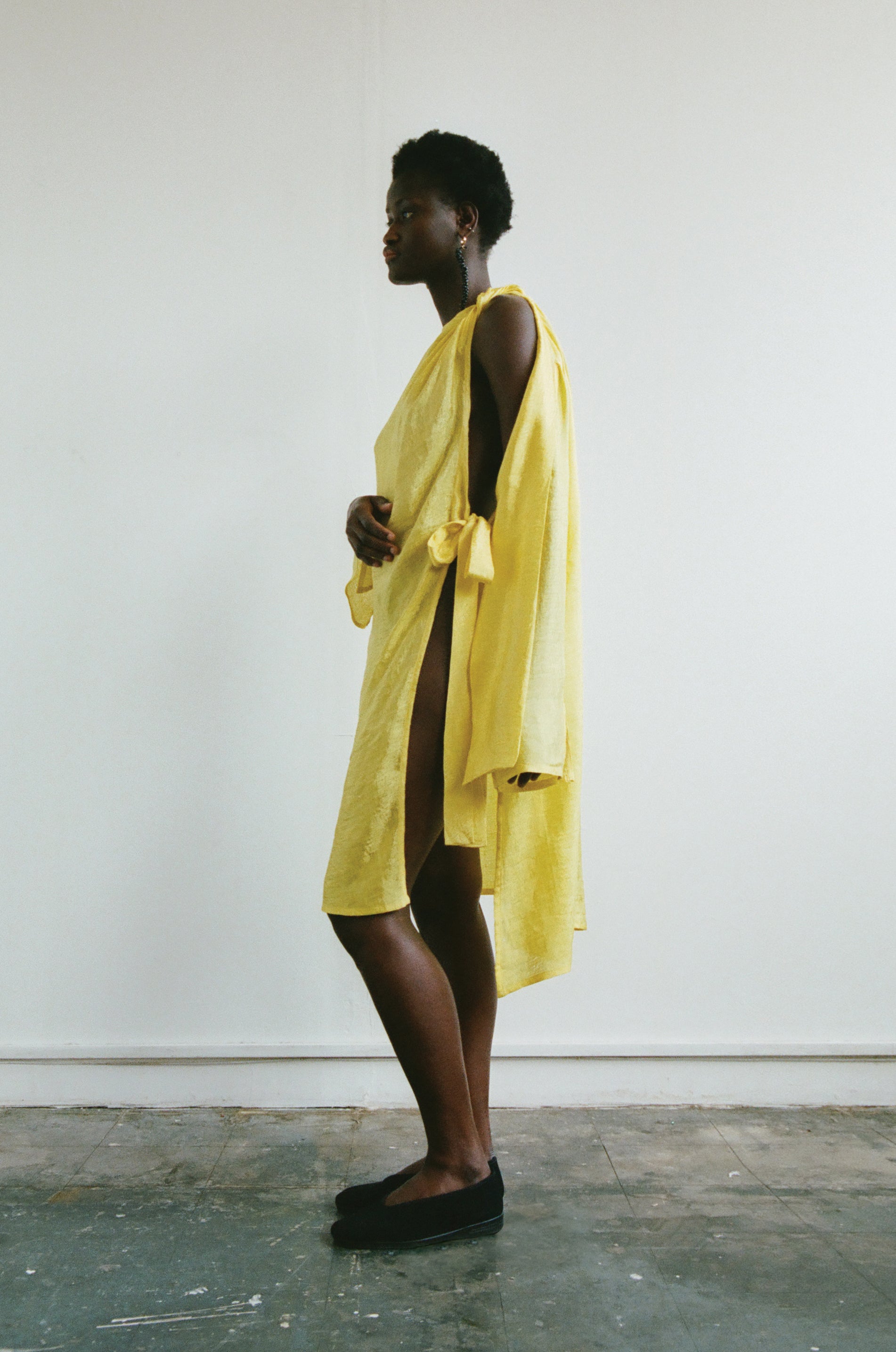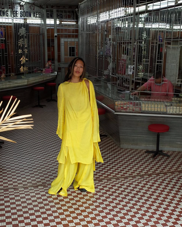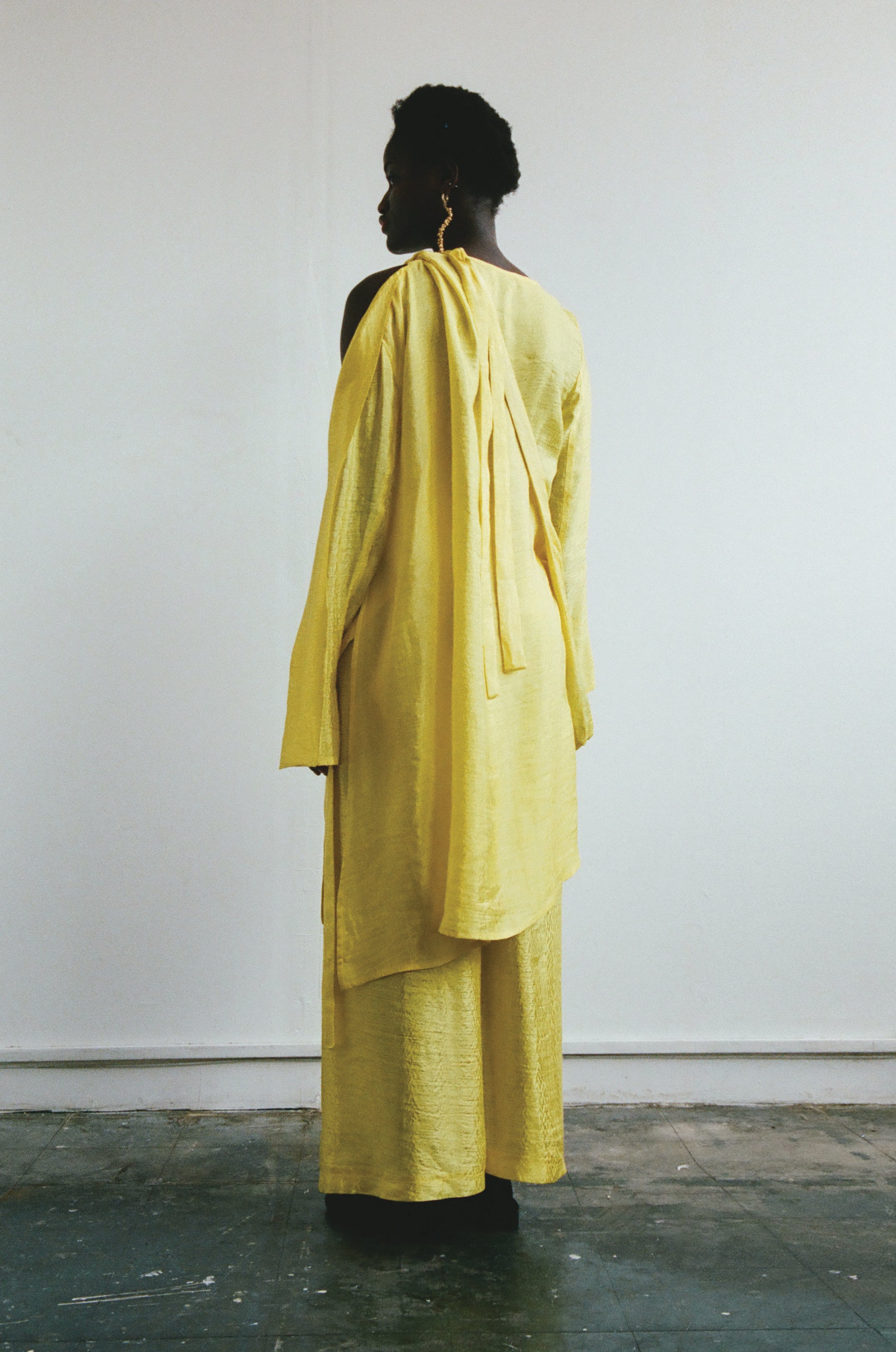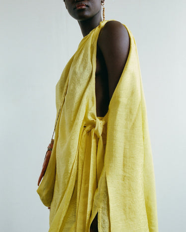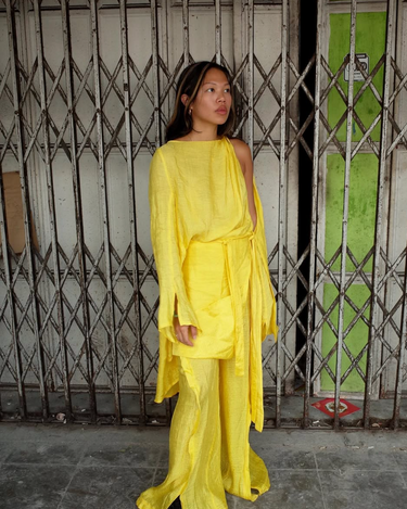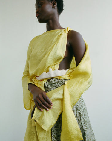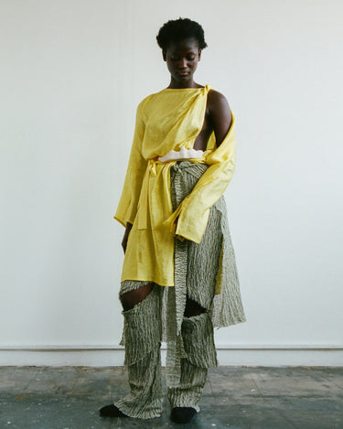 Crafting contemporary genderless mythwear, her practices are committed to sustainability and honoring traditional crafts - all garments are handwoven with natural fabrics where the marks of the maker are evident.