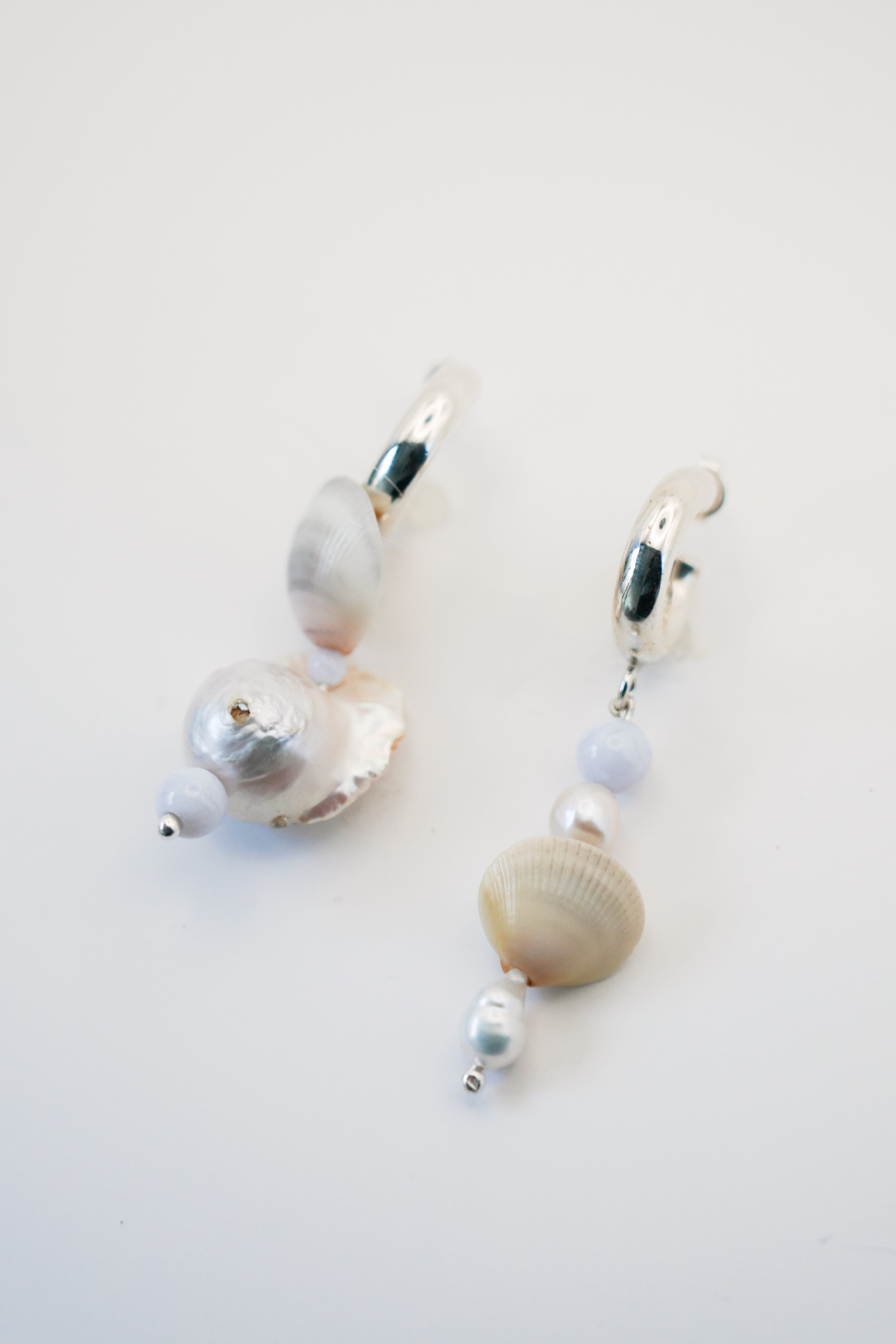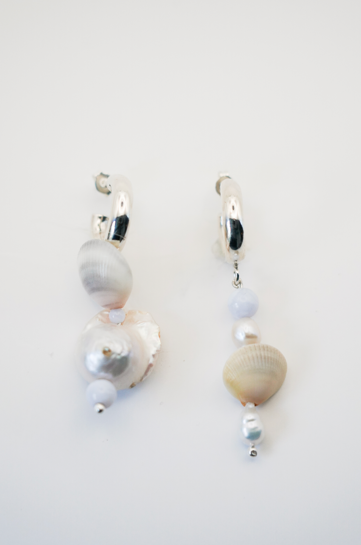 Includes angelite, baroque pearl, white river pearl & shells from Balandra, BC.