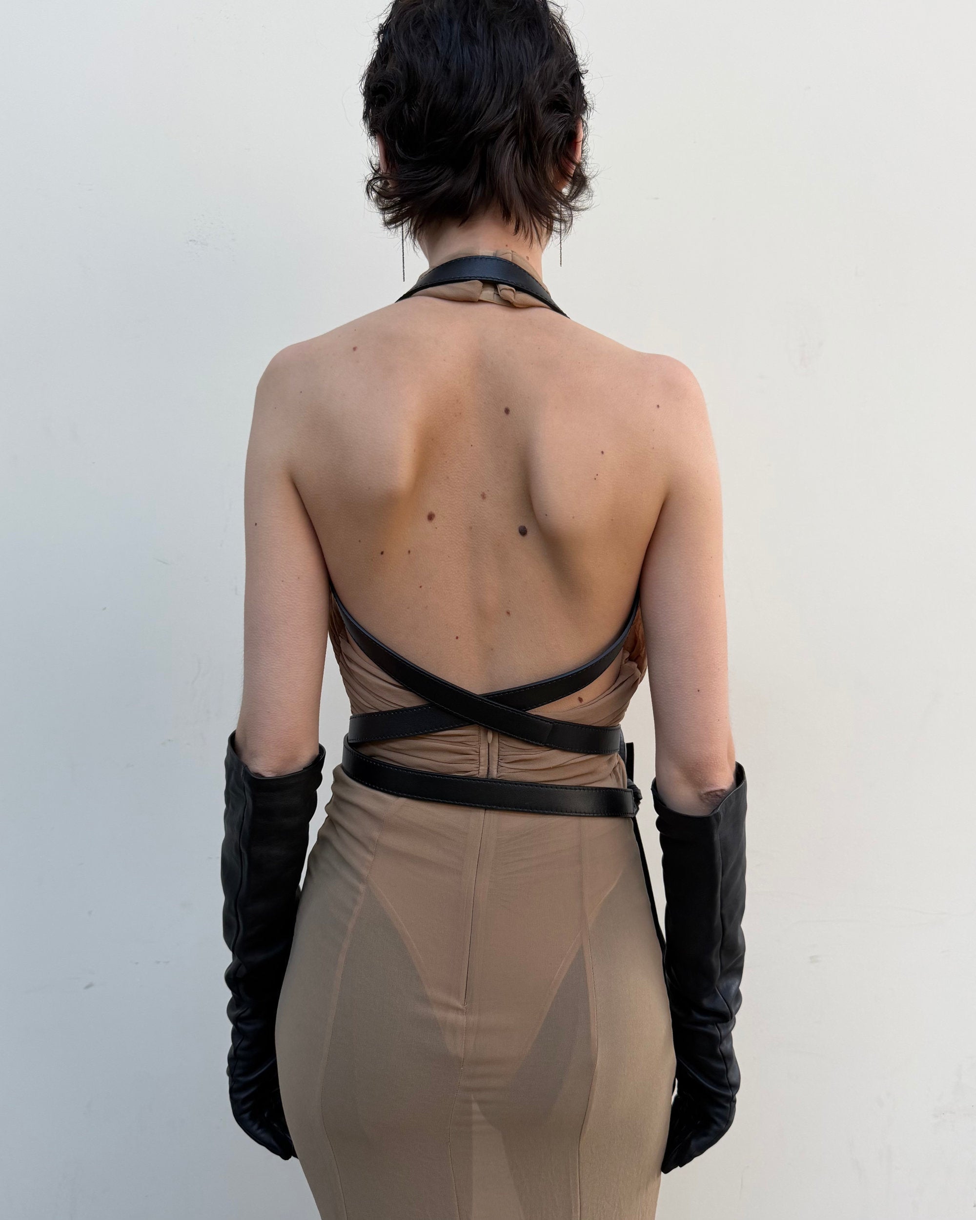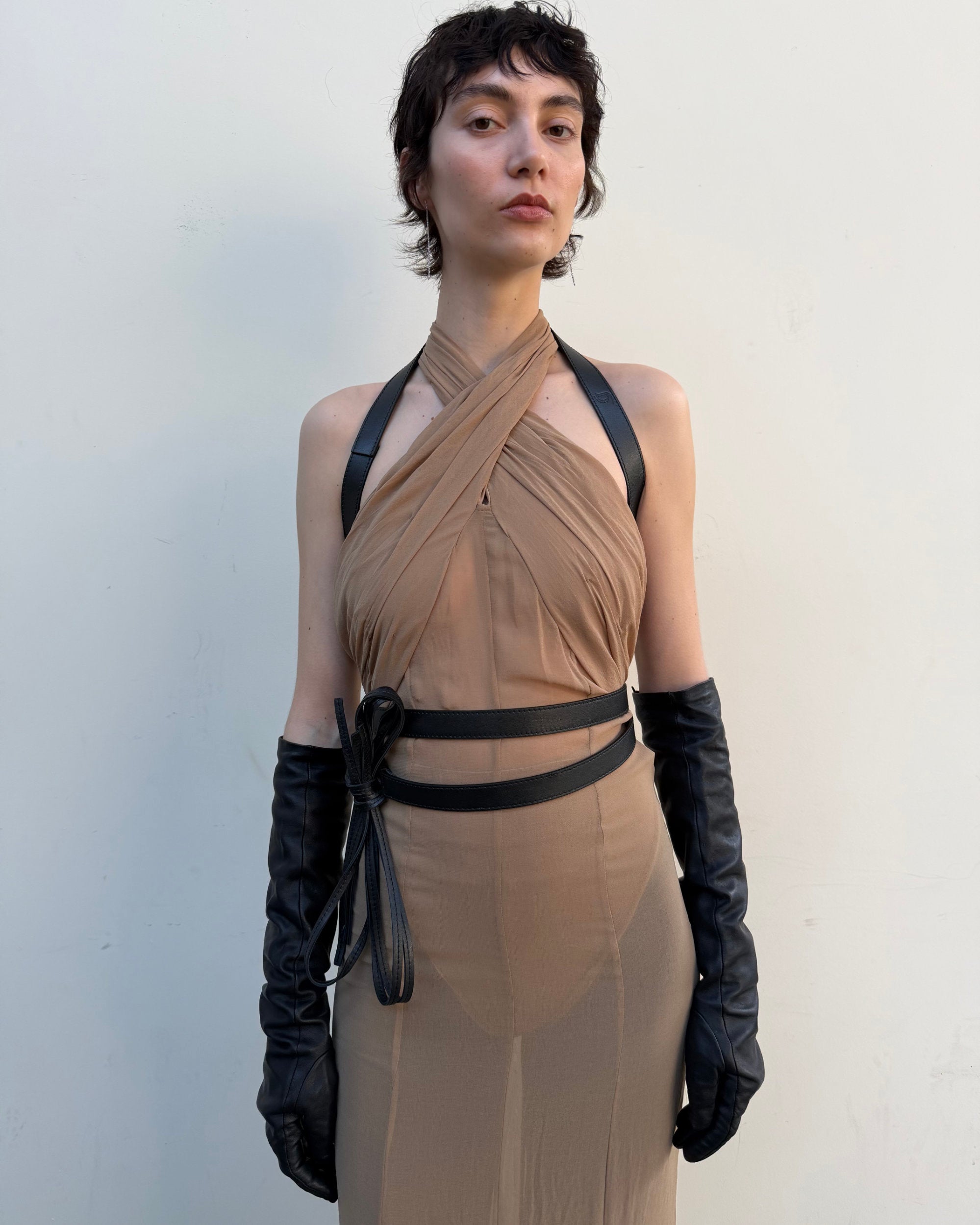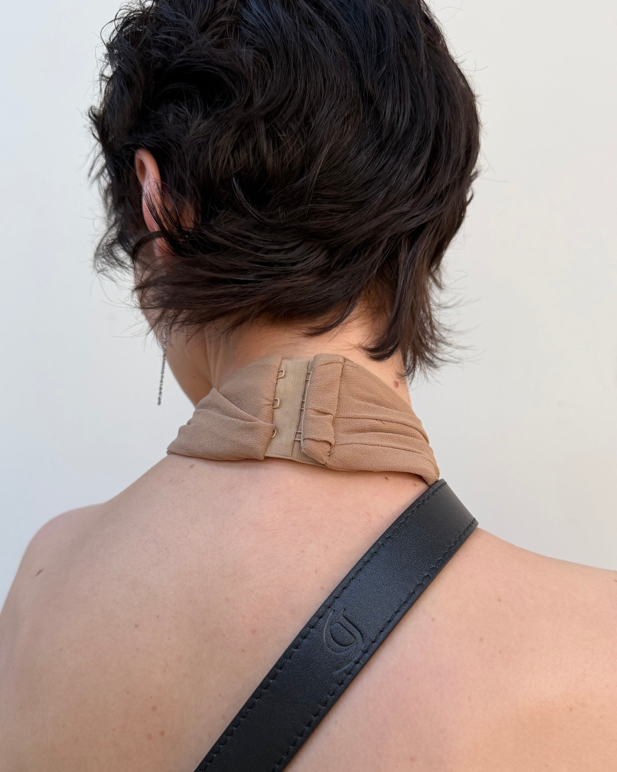 Wear it casually over a cotton shirt for a polished daytime look or pair it with a sleek slip dress to elevate your evening fit. Made from soft black leather, this versatile harness belt combines elegance and minimalism. A must-have piece that will save and change your outfit in countless ways.