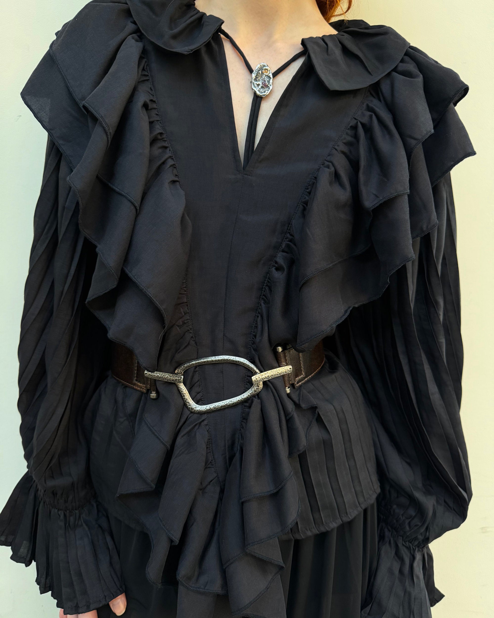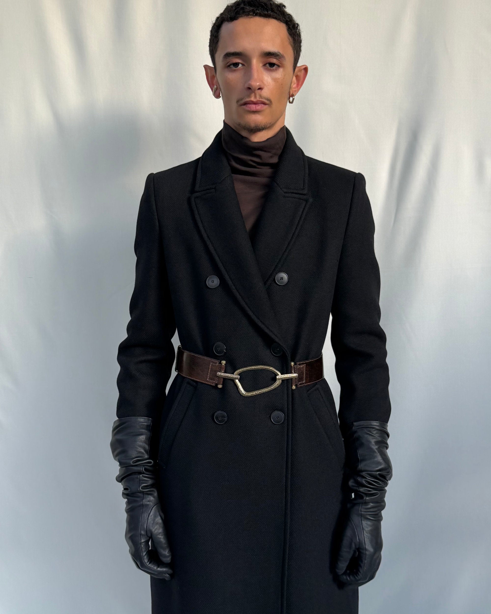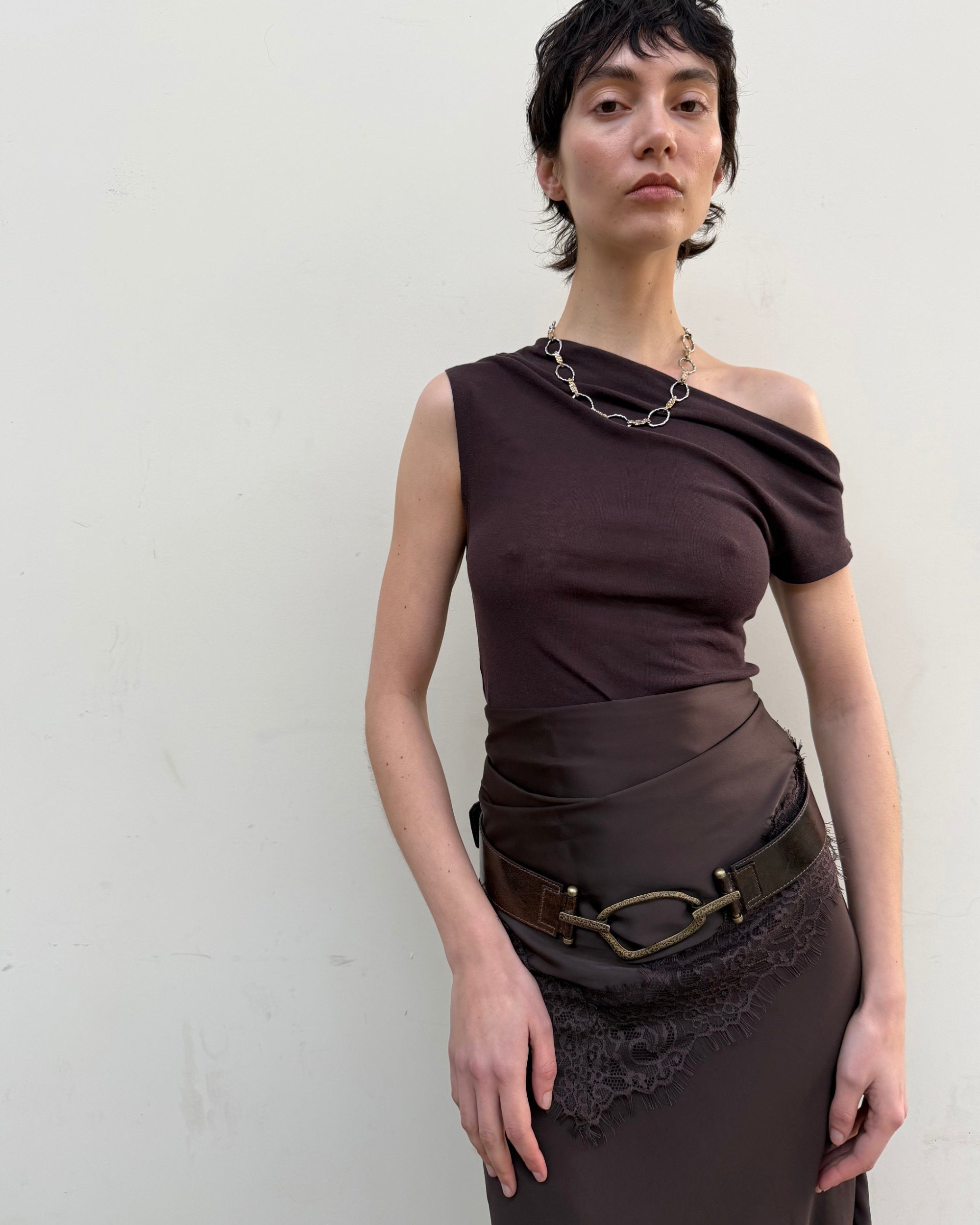 Handcrafted in Naples, Italy, this brown belt features rich, textured leather with a natural grain that gives it depth and character. The statement bronze metal hammered buckle adds a bold touch that stands out without overpowering the design.