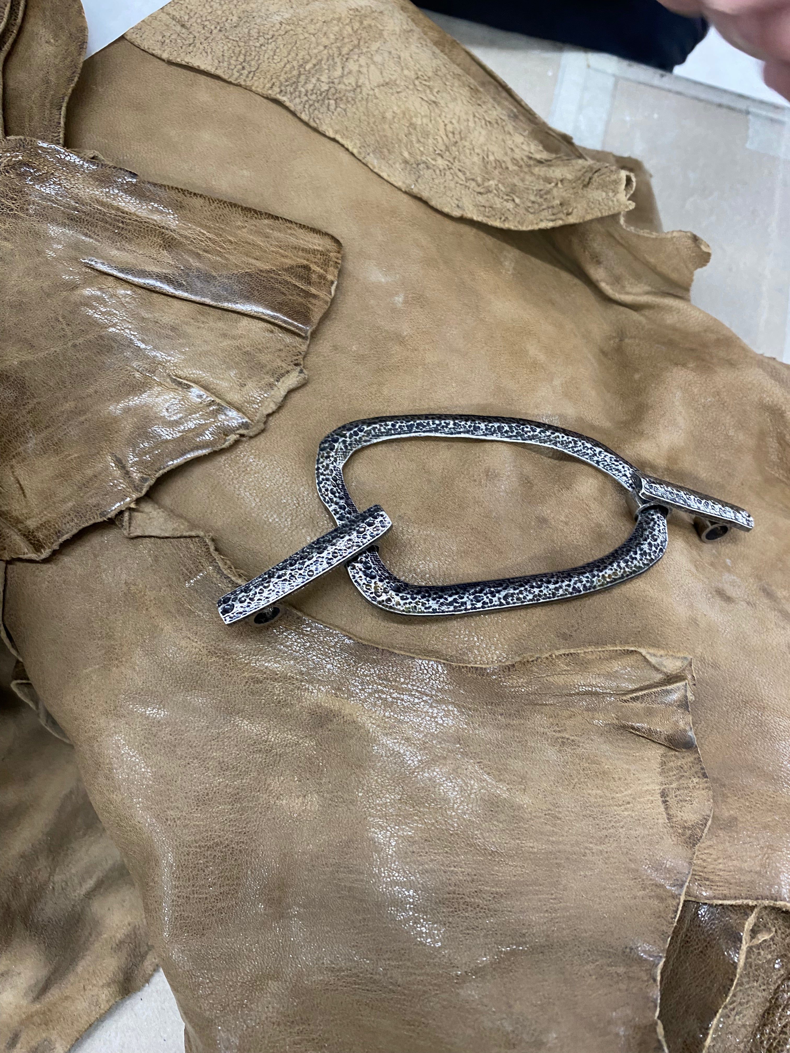 The leather pieces are also a heritage craft from her hometown. She sources them from places that have vintage leather from the 90s, which might have been unsold or overproduced back then. The linings are made with dead-stock materials or vintage fabrics.