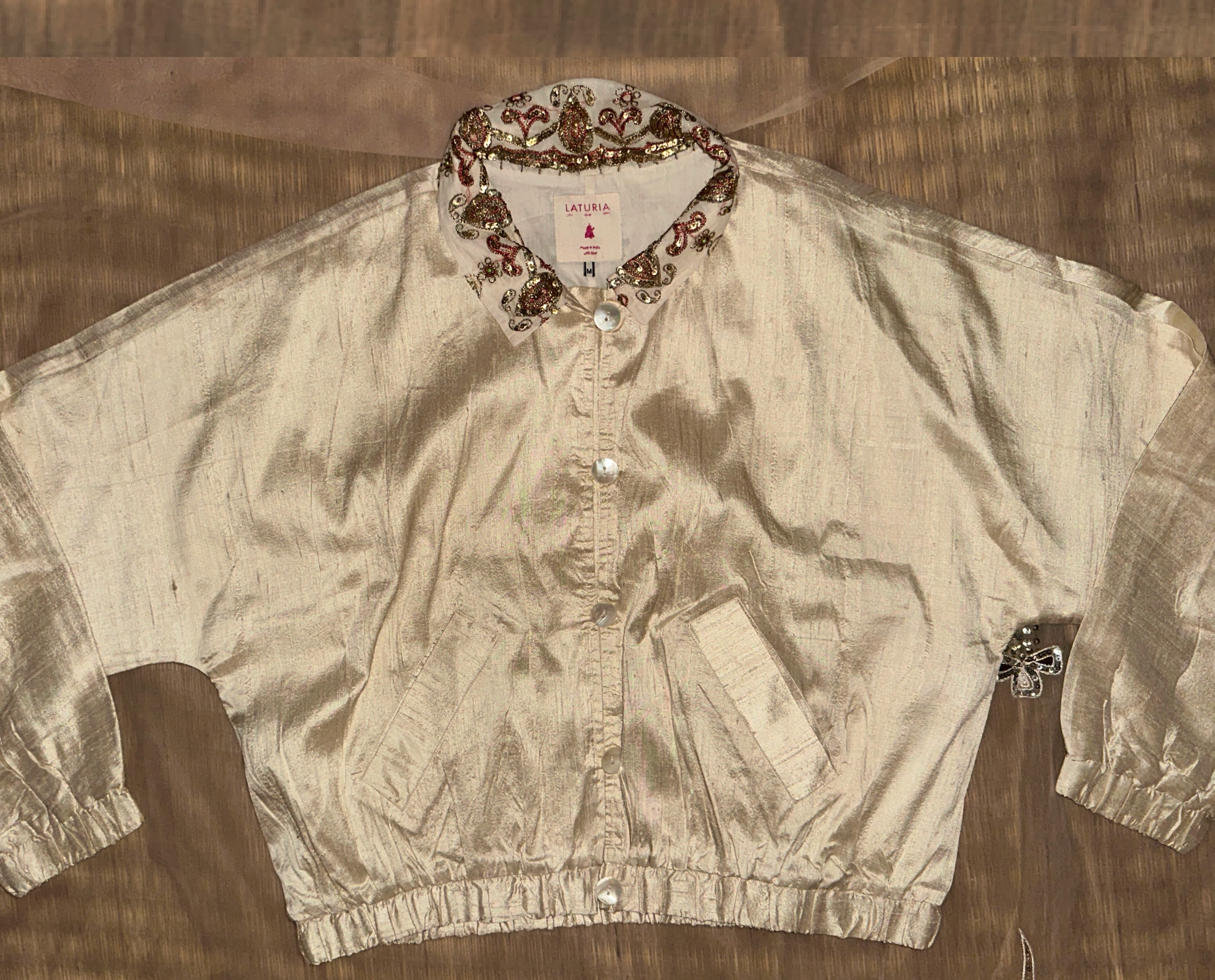Roshni Cream Silk Bomber Jacket